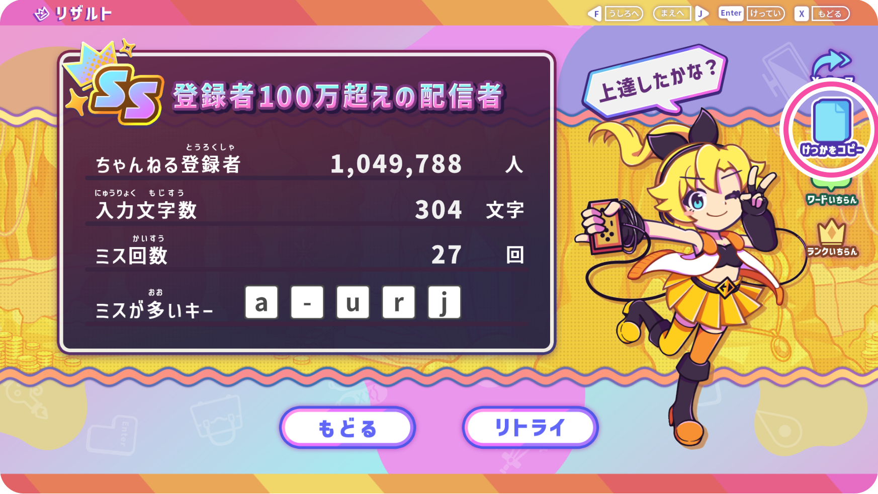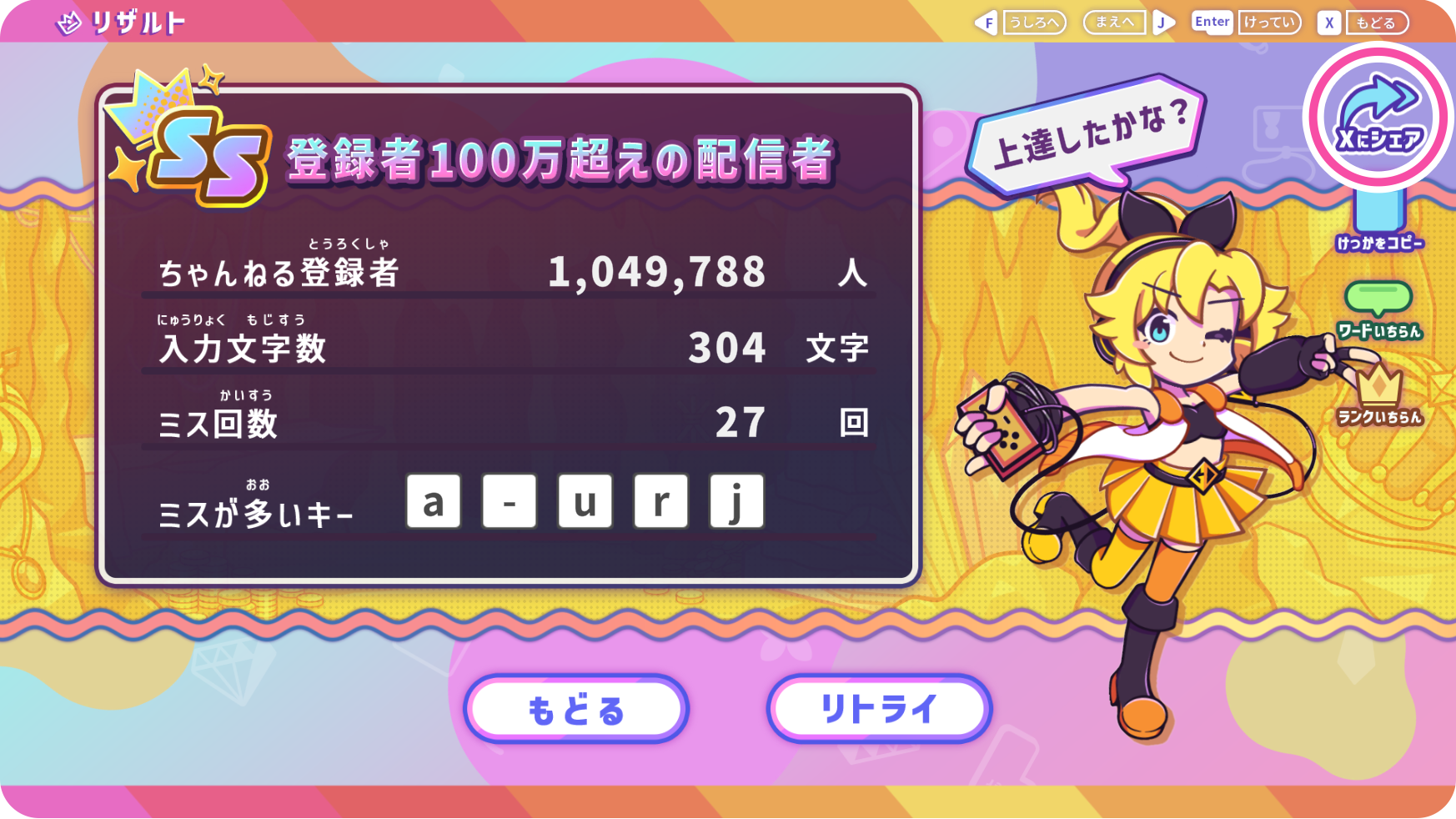 さらに、今回はなんとタイピングちゃんねるを遊んでリザルトをXにシェアすると、プレゼントの当選確率がアップします!