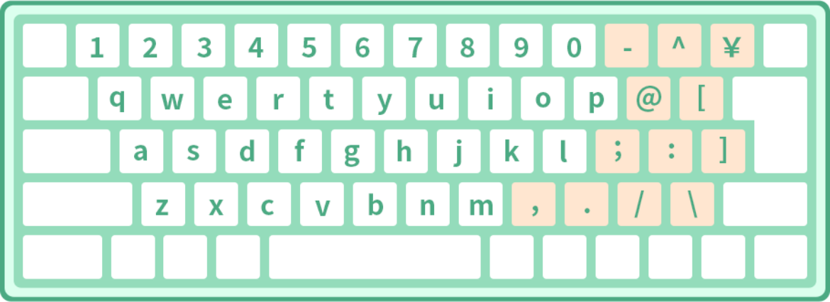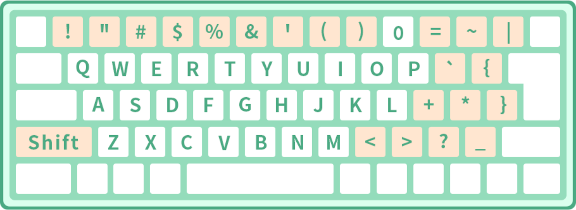 一部の記号はShiftキーを押しながらの入力が発生します。