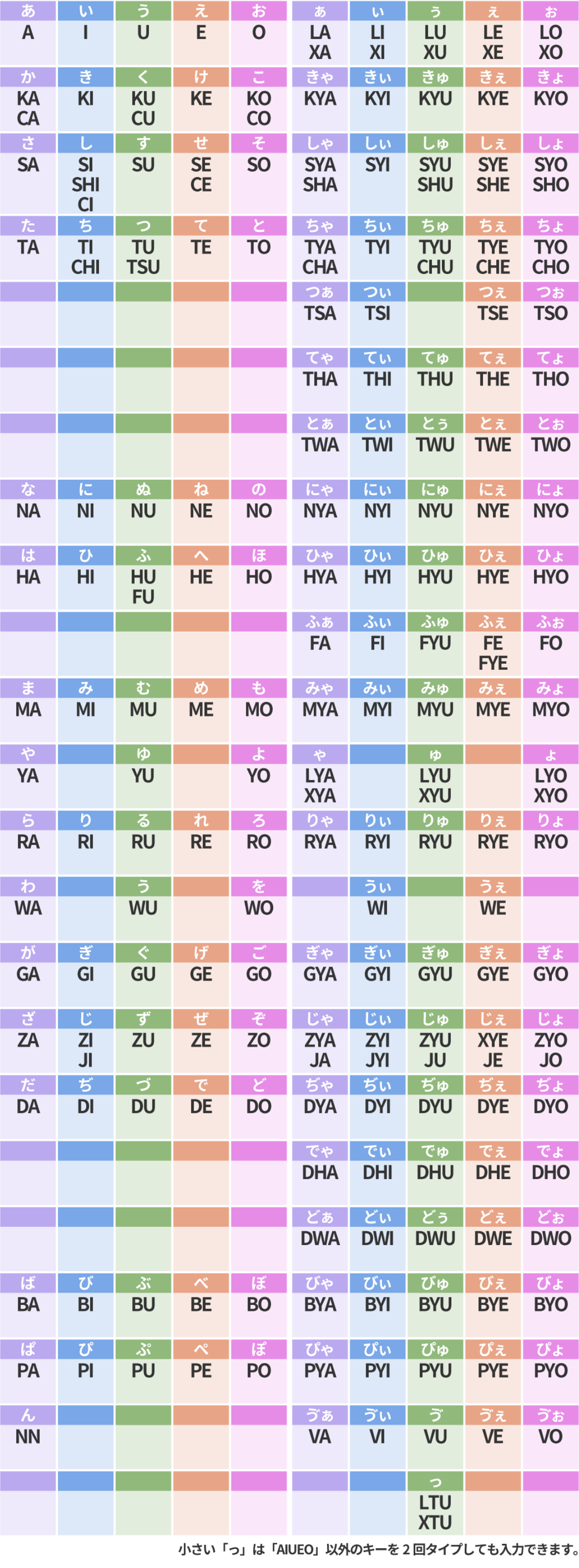 自分の使っているキーボードのアルファベットの場所を少しずつ覚えることも大事ですが、入力方法に迷ったらあいうえお表も見直してみましょう。