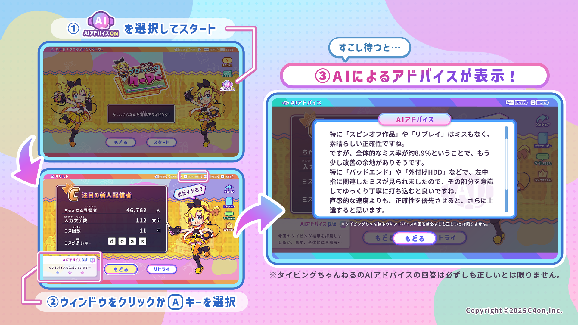※タイピングちゃんねるのAIアドバイス(β版)の回答は必ずしも正しいとは限りません。