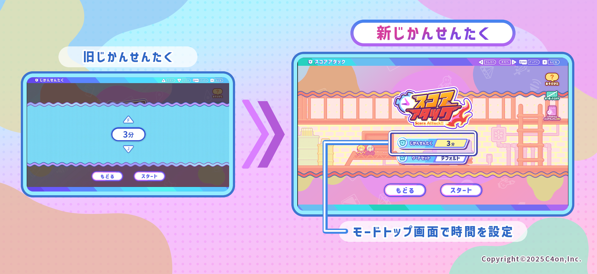 「スコアアタック」モードの『じかんせんたく』の設定方法を変更